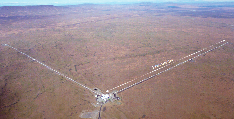 Детектор представляет собой четыре больших зеркала (40 килограммов, 34 сантиметра в диаметре), которые закреплены на концах двух перпендикулярных труб, называемых плечами детектора. Тендекс-линии гравитационных волн растягивают одно плечо, сжимая при этом второе, а затем, наоборот, сжимают первое и растягивают второе. И так снова и снова. При периодическом изменении длины плеч зеркала смещаются друг относительно друга, и эти смещения отслеживаются с помощью лазерных лучей способом, который называется интерферометрией. Отсюда и название ЛИГО: Лазерно-интерферометрическая гравитационноволновая обсерватория.