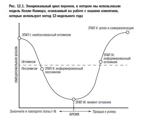 Итак, мы полны решимости похудеть: мы уже накачали себе картинок и рецептов из мотивирующих пабликов, купили новые кроссовки. Нам кажется, что мы быстро достигнем своей цели, и уже скоро будем махать ручкой тем, кто в нас не верил, со словами: «Выкусили, неудачники!». Мы отказываемся замечать отрицательные стороны нашего плана (например, то, что скинуть 35 килограммов за три дня невозможно). К счастью, этот этап длится совсем недолго, и на смену ему приходит… 2. Информированный пессимизм Тут мы понимаем, что путь к цели долгий и кропотливый. Килограммы уходят очень медленно. Мы спрашиваем себя, а нужно ли нам вообще худеть? При этом у нас еще есть силы и мотивация стремиться к цели. Мы продолжаем ездить в спортзал три раза в неделю. При этом мы уже не выкладываем, как раньше, фотографии о своей новой жизни в социальную сеть. Рекомендую вам не бросать движение к цели на этом этапе, потому что дальше — еще хуже (а значит, и веселее). 3. Момент отчаяния Большинство людей сдается именно здесь, потому что в голове постоянно скачет одна мысль: «У меня ничего не получится. Пора смириться с тем, что есть». Мы стараемся убедить себя, что 18 сантиметров жира на животе — это нормально, а три вторых подбородка вроде бы не сильно портят селфи, если фоткать себя сверху. …Делайте, что хотите, но не сдавайтесь в момент отчаяния. Прокачивайте свою веру и двигайтесь дальше! Вытаскивайте себя из теплой постели. Выталкивайте себя на улицу, на встречи — куда угодно, лишь бы продолжать двигаться. Именно про этот этап говорят так: «Не можешь даже ползти к цель, ляг — и лежи по направлению к ней». Если вам удается преодолеть этот этап, то у вас открывается второе дыхание, которое называется… 4. Информированный оптимизм Ура! Мы пережили момент отчаяния. К этому этапу у нас уже появляются первые успехи, а цена, которую платим за перемены, «снижается». Наши мысли и действия становятся более упорядоченными и привычными. Нас уже не надо выталкивать в спортзал. Мы спокойненько ездим туда сами и вполне смиренно. Нам становится комфортно, и мы не собираемся останавливаться. 5. Успех и самореализация Финальный этап. Положительные стороны усиливаются: мы уже неплохо похудели, а «цена» становится все более незначительной. Мы уже привыкли к нагрузкам, у нас выработалась привычка ездить в спортзал. Действия, которые раньше были для нас сложными и малоприятными, теперь привычны. Еще чуть-чуть и цель будет достигнута! Каждый раз, когда мы завершаем цикл полностью, мы не только радуем себя, но и повышаем самооценку. Конечно, этот цикл может длиться бесконечное количество раз, ведь вы каждый раз выходите на новый виток развития. Но именно умение не сдаваться в момент отчаяния и отличает лидеров. ps: спасибо за рассказ о цикле книге «12 недель в году». Авторы книги ссылаются на исследования психологов Дона Келли и Дэрил Коннор, которые описали цикл в одноименной работе.