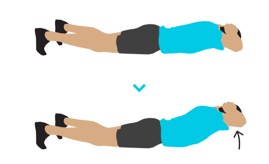 2. Прижмите подбородок к груди (будто удерживаете под ним теннисный мячик) и поднимите плечи и верх груди от пола, удерживая ноги прижатыми к полу.