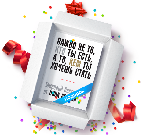 Это еще не все: в каждую посылку с бумажным заказом мы докладываем подарок. На этот раз это будет книжка-пинок «Важно не то, кто ты есть, а то, кем ты хочешь стать». Она очень здоровская, мотивирующая и вдохновляющая. Ее называют карманной Библией для талантливых, но робких: в ней открывается секрет, как становятся богатыми и влиятельными самые обыкновенные люди — как мы с вами.