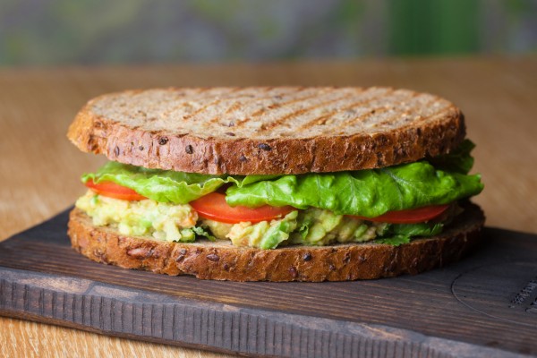 2. Размажьте смесь по хлебу и украсьте сверху салатом-латуком и ломтиками помидора.