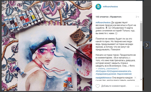 Мы стали выпускать много книг по творчеству и с конца 2015 года у нас появился творческий инстаграм* @miftvorchestvo, в котором я публикую интересные фотографии по мотивам наших книг, блокнотов и раскрасок.