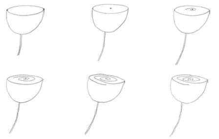 5. Завершите спираль на внешней стороне цветка, обращенной к вам. Сотрите лишние линии.