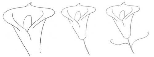 1. Начните рисовать первую лилию с изящной S-образной линии.