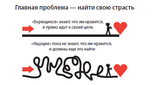 А что, если мы не знаем, в чем же наша страсть? Как ее найти? Ричард говорит, что есть люди «борющиеся» и «ищущие». Первые — это те, кто уже свою страсть нашел и теперь они идут к цели. «Ищущие» еще не нашли. Но это совсем не повод ничего не делать. Главное, искать и никогда не останавливаться. Со временем, вы найдете то, что действительно полюбите.