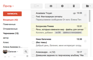 Каждый день в моей почте около 100 новых писем, практически на каждое надо ответить. Также я получаю общие рассылки о поступлении книг в работу, о приходе тиражей на склад, новостные письма. Отдельная часть писем — письма от моих коллег по совместным вопросам, задачам и проектам. Коллегам я стараюсь отвечать как можно быстрее, внешним контактам — за 2 рабочих дня, важные новости или информацию о приходе книг просто беру «на вооружение».
