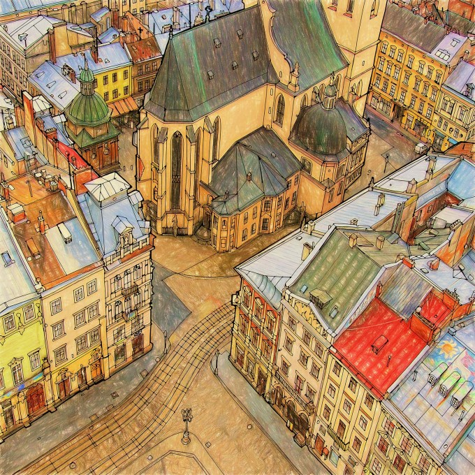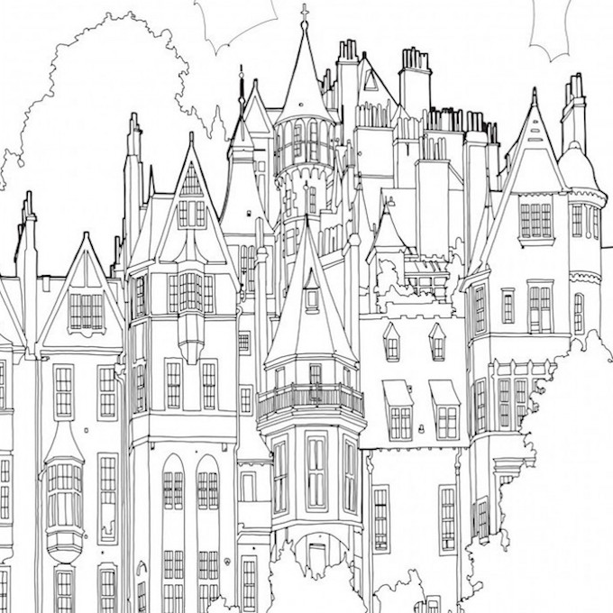 Что касается новой книги «Удивительные строения», то я хотел показать разные виды красивых зданий — от средневековых замков до современных шедевров архитектуры. Мне было приятно их зарисовывать, и мне кажется, читателю понравится разукрашивать эти строения. Я хотел сосредоточиться на отдельных зданиях, городских кварталах, памятниках и мостах. То есть сделать акцент на таких великолепных строениях, как здание телекомпании «Фудзи-ТВ» в Токио, Крайслер-билдинг в Нью-Йорке, московский Храм Василия Блаженного, Танцующий дом в Праге и лондонская электростанция Баттерси.
