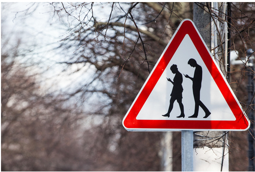 Вот такие знаки «Пешеходы со смартфонами» установлены в Парке Сокольники в Москве, — источник.