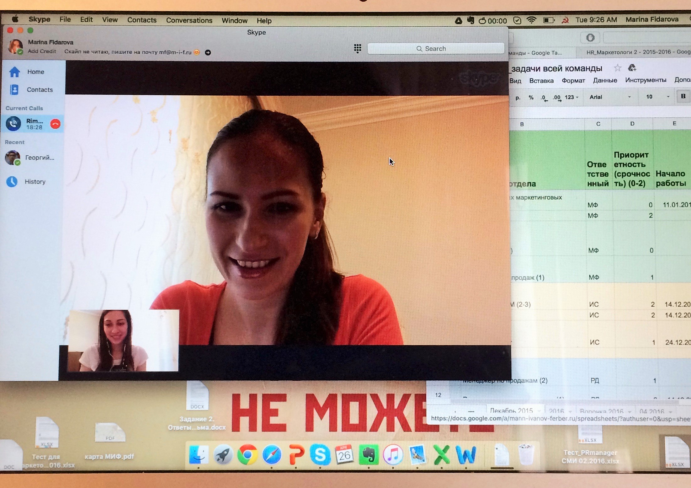 10:30-11:30 — встреча по скайпу с PR-менеджером. Первые встречи с HR-ами в МИФ проходят по скайпу. Это помогает кандидатам не тратить время на дорогу и оперативно назначать встречи, например, день в день.