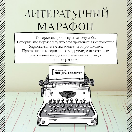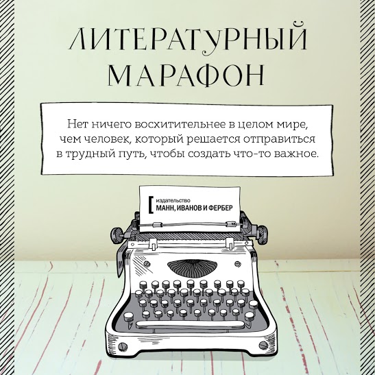 Друзья, ловите окрыляющие открытки по книге «Литературный марафон». Особенно рекомендуем тем, кто находится в творческом кризисе, мечтает стать писателем или просто хочет добавить в свою жизнь больше красок и вдохновения.