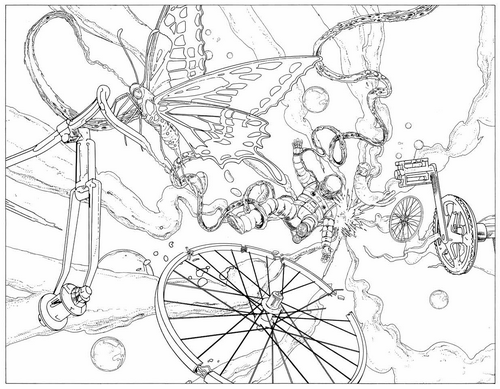 Помните, когда вы были маленьким и рассекали по улочкам на своем трехколесном велосипеде, вы ведь ездили не по асфальту среди домов и деревьев. Вы пересекали совершенно удивительные миры. Захватывающие существа ждали вас на каждом повороте. С этой раскраской вы вернете себе те ощущения из детства.