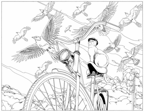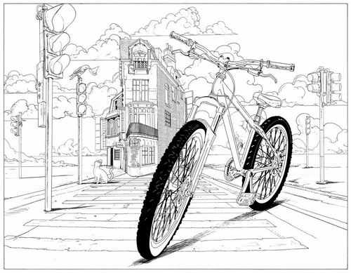 С этой раскраской вы сможете погрузиться в креативную историю, отдохнуть и позаниматься творчеством. В ней есть и свобода и креативность. В общем, любому творческому человеку эта раскраска придется по душе. А так же тем, кто любит велосипеды, путешествия и котиков -)