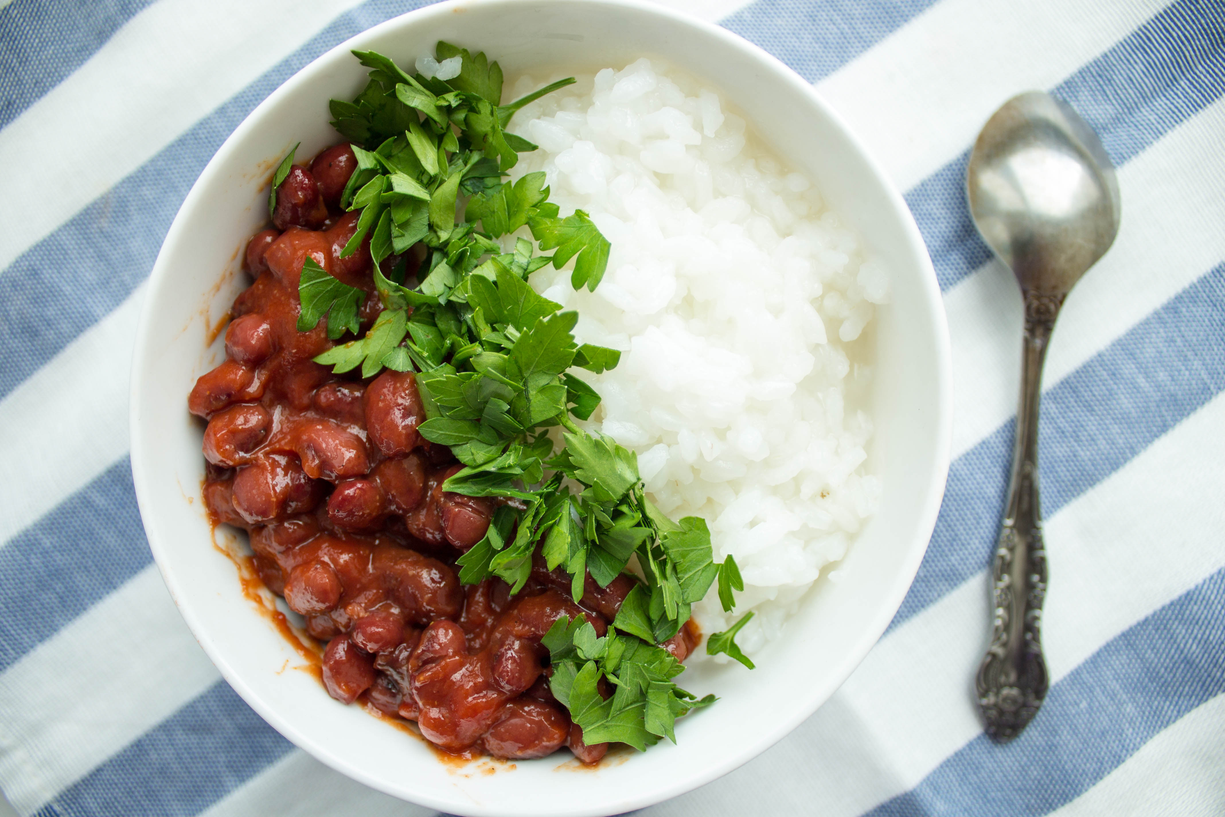 Соедините сальсу, фасоль, сок и кинзу и подавайте на разогретом рисе.