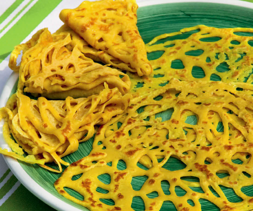 «Джала» означает «рыбацкая сеть», а «роти» — это закрепившееся в малайском языке название индийских лепешек. На малайзийском острове Пинанг роти джала едят, окуная в карри. Все ингредиенты для кружевных блинов доступны в России.