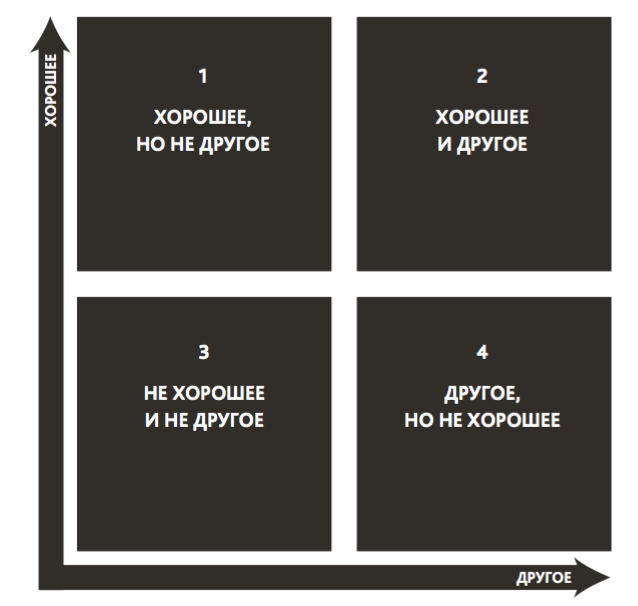 в правом верхнем углу. В нашем случае в этой части совмещены «хорошее» и «другое», это и определяет успешный бренд.