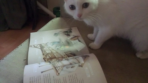 А когда хозяйка заканчивает работу и проводит время с семьёй, а Мася высыпается, кошка принимается за чтение книг. Здесь главное условие — чтобы книга была про мышек, например, «Технические сказки».