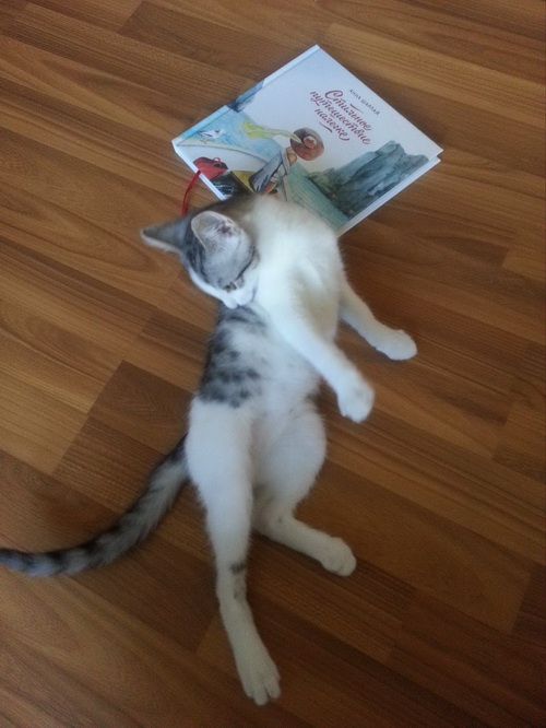 Коту Батону всего четыре месяца, и пока он сдал в печать лишь одну книгу. Зато он почитатель домашней библиотеки, любит дочитывать оставленные без присмотра книги. Батон всегда выбирает издания МИФа — у них есть ляссе, которые он считает важнейшим элементом книг.