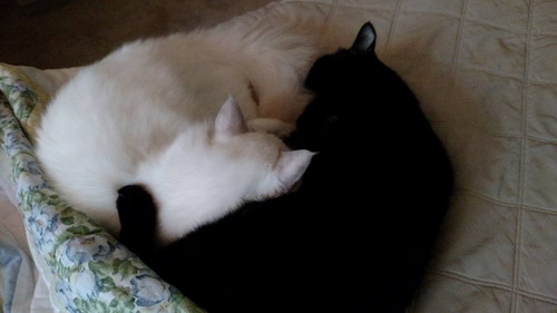 Никакого покоя его Кошачьему Величеству. Ситуацию спасла ещё одна любимица — собачка, на которую Мотэо иногда отвлекался. Впрочем, со временем и с этим котик смирился: проводить время с хозяйкой — удовольствие, даже если она отвлекается на работу.