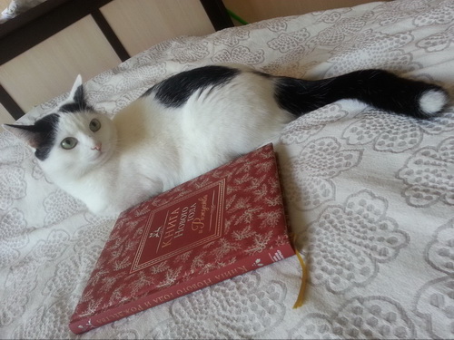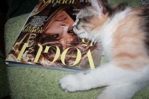 В семье, увлечённой чтением, даже кошка не остаётся в стороне, всегда обнюхивает новые книги, но сама предпочитает глянец.