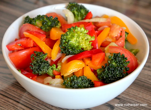 Рагу из брокколи, красного перца и бурого риса на ужин