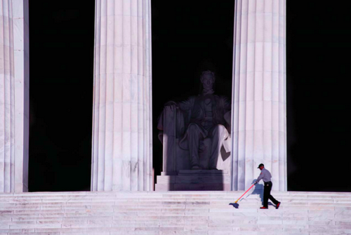 Далеко не последнюю роль играет сила, которая исходит от широких линий колонн Мемориала Линкольна в Вашингтоне. Очевидно, что в данном случае куда более толстые линии здания создают разительный контраст тончайшей ручке швабры, которую держит мужчина, моющий лестницу. Конечно, следует учесть и человеческую фигуру: ничто, кроме памятника, не повторяет лучше человеческую фигуру с шваброй, и мы сразу понимаем величие громады Мемориала.