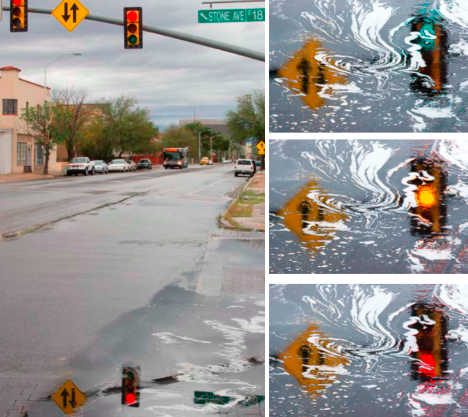 Представьте, сколько ливней я повидал, пока рос на тихоокеанском Северо-Западе США. Поэтому тем утром в Тусоне был удивлен, услышав, что в городе впервые за полгода выпало много осадков. Стоя на углу этой улицы, недалеко от испанского квартала, я был зачарован фактурой и цветом открывшейся передо мной картины. Отлогая дорога гнала воду к бордюрам, а светофор, меняя цвета, отражался в этой реке.