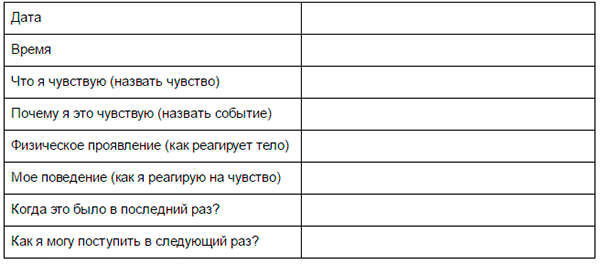 Задание посложнее, для самых решительных. Ежедневное ведение EQ-дневника поможет вам увидеть источник эмоций, их интенсивность, а также сформировать новые реакции. Итак, начертите таблицу и заполняйте ее по мере появления ярких эмоций. Рекомендуемые графы: