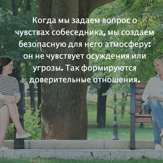Повысив внутриличностные компетенции, можно переходить к межличностным. Очень важно научиться понимать чувства других людей. Для этого можно начать с простого вопроса: «Мне кажется, ты… (гневаешься, расстроен, доволен, и т.д. — необходимо назвать эмоцию человека, которую он, на ваш взгляд, чувствует). Это так?». Очень важно, чтобы это был именно вопрос, а не утверждение.