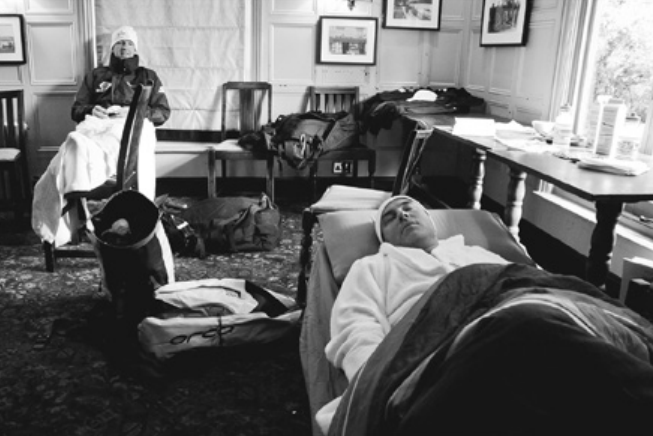 Боль победы. Дэвид готовится к следующим сорока часам плавания при поддержке разработчиков средств, помогающих преодолевать холод и ранения. Фото из книги