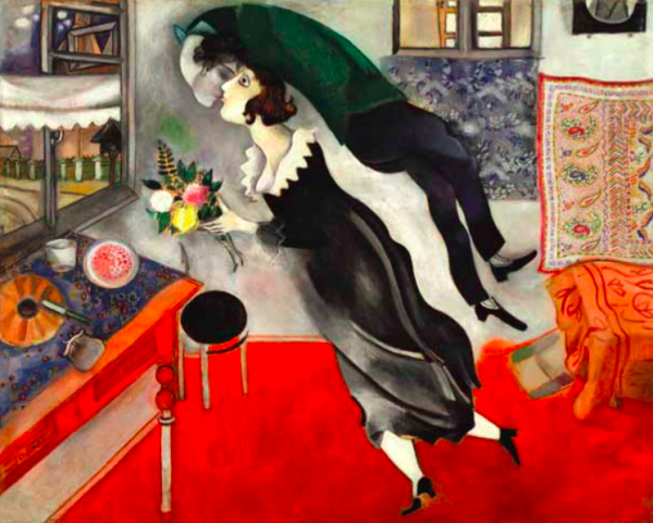 Шагал уже знал, что обязательно напишет этот момент: яркие цветы, узорчатые платки, но главное — чувство полета. И глаза Беллы, когда она думала, что