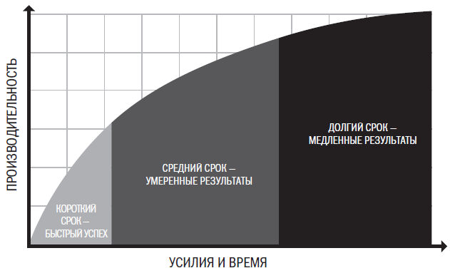 Закон убывающей доходности: успех, достигнутый в короткие сроки, непродолжителен. Закрепление достигнутого требует значительно больших усилий.