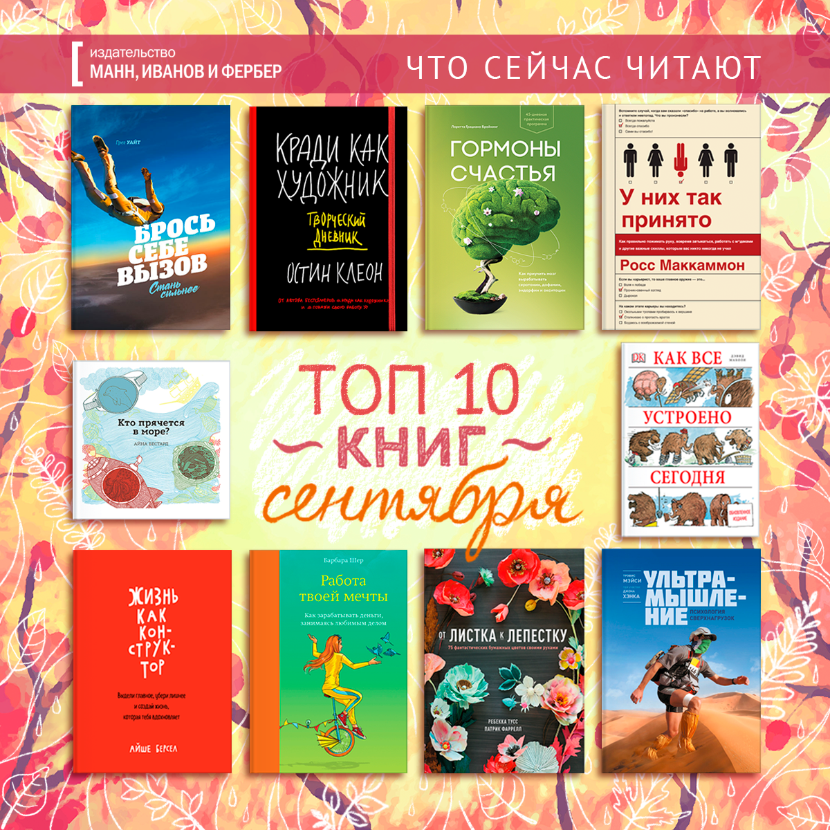 «Читателю хорошо — он может собственноручно выбрать писателя». Любопытная мысль, правда? Предлагаем посмотреть, что выбирали читатели книг МИФа в первый осенний месяц. Представляем ТОП-10 книг сентября. А чтобы вы не просто пролистывали список, выбрали по классной цитате из каждой книги.