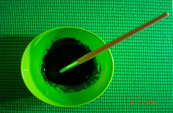 - Выливаем капельку (если получится) пищевого красителя и размешиваем кисточкой до получения однородного цвета.