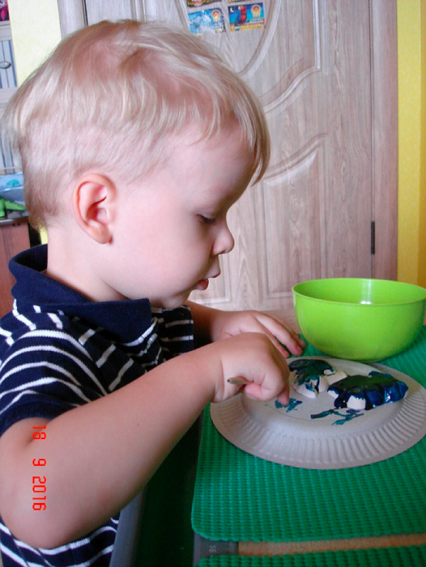 Ребятам очень понравился наш творческий эксперимент. Артём был очень удивлен тому, что можно рисовать, используя яичный желток, и самому создавать краски.