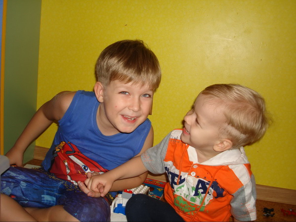 Саша увидел большое количество новых и ярких предметов и немедленно схватил две гипсовых фигурки для раскрашивания. Причем одну фигурку выхватил из рук Артема, протянув ему взамен ту фигурку, которую схватил сначала сам. Оба мальчика взяли по кисточке и с вдохновением и огромным восторгом начали раскрашивать.