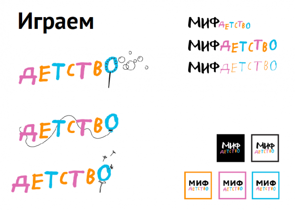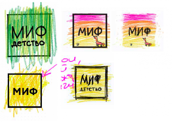 Мы не знаем, каким станет наш логотип через год или два. У эволюции шаги не могут быть большими: из одноклеточного не получился наутро человек. Нашим одноклеточным стал квадрат со словом «МИФ» — очень простой. Из него родился лого «МИФ Детство». А уже из него рождаются по 2 новых лого каждый день — свой для каждой обложки. Это мы и называем эволюцией.