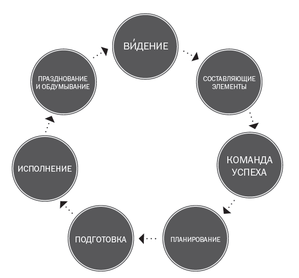Чтобы достигнуть долгосрочной цели, одного желания мало. Вы должны разработать структурированный систематический подход. Круг успеха — это простая фигура, но она требует прагматического подхода.