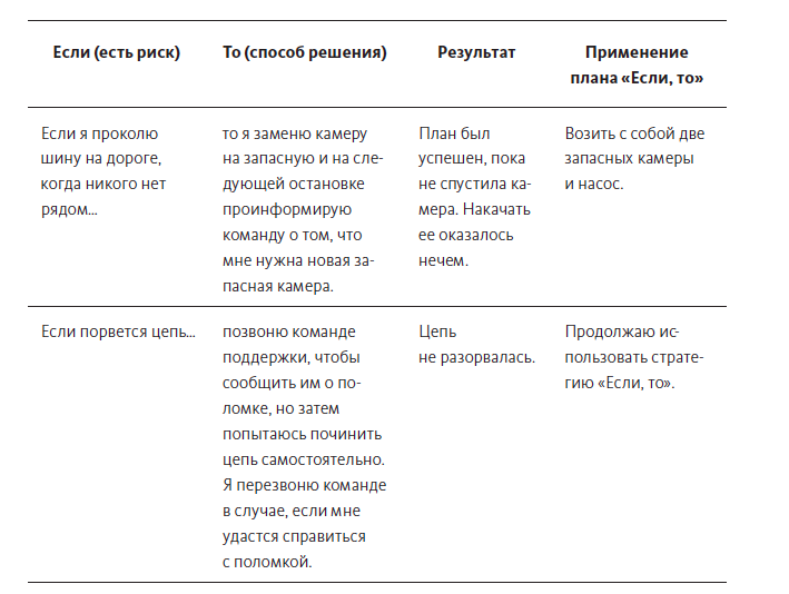 - определите препятствия на пути к успеху и разработайте план «Если, то».