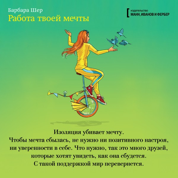Подготовили порцию открыляюще-зажигающе-вдохновляющих открыток с цитатами из новой книги Барбары Шер «Работа твоей мечты». Если вам срочно требуется воодушевиться, welcome.