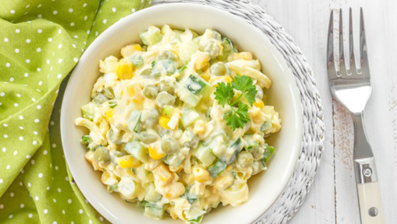 Салат «Радуга» с кукурузой и горошком