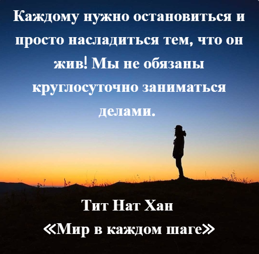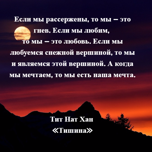 В книгах «Мир в каждом шаге» и «Тишина» великий духовный лидер, дзен-буддийский монах Тит Нат Хан рассказывает, как обрести внутреннюю гармонию при любых обстоятельствах. Мы выбрали несколько вдохновляющих цитат, которые помогут вам успокоиться, взглянуть на мир другими глазами и почувствовать себя немного счастливее.