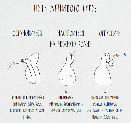 Плыть в потоке вам поможет Ленивый Гуру — безмятежное создание, которое живет внутри вас. Да-да-да, надо только разрешить ему проснуться.