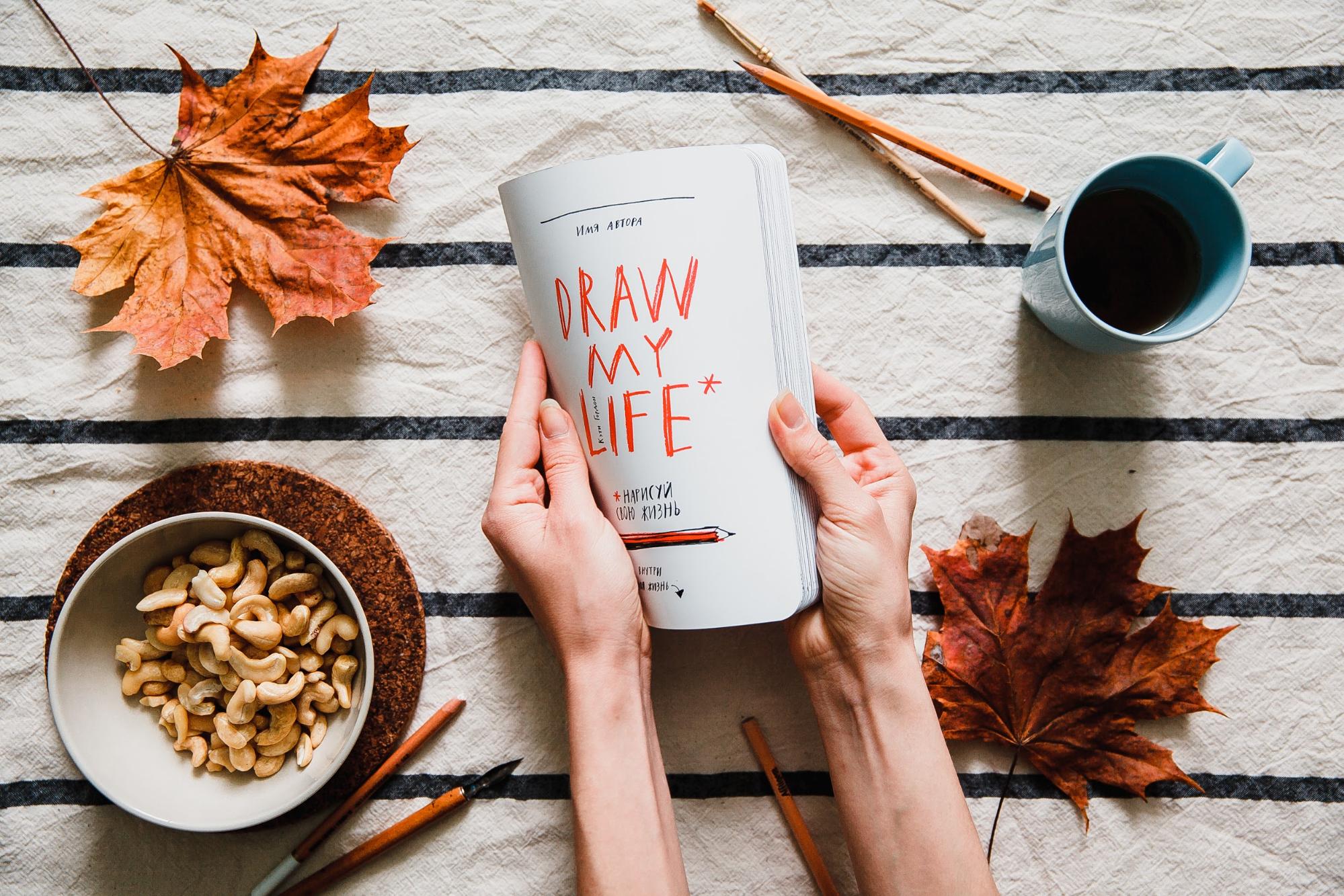 Творческий блокнот «Draw my life» — создан для того, чтобы быть вашим персональным хранителем воспоминаний: от любимого школьного учителя до судьбоносного события. А еще с этим блокнотом можно дурачиться, он совершенно влюблятельный: в себя, в вас, в жизнь.
