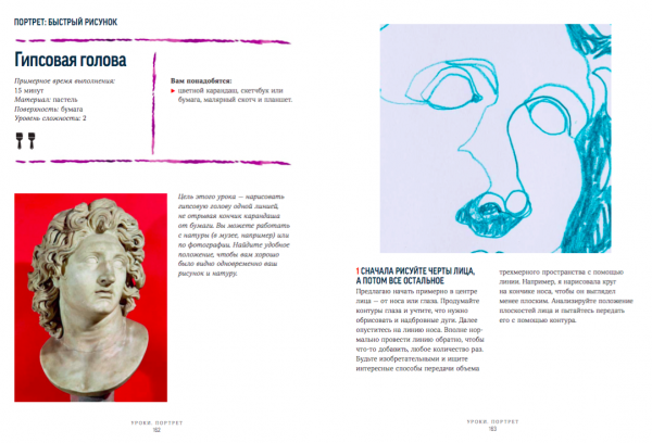 Попробуйте нарисовать гипсовую голову одной линией, не отрывая кончик карандаша от бумаги. Можете сходить в музей и рисовать с натуры, или воспользуйтесь фотографией.