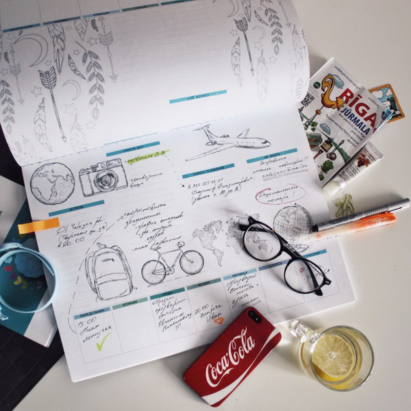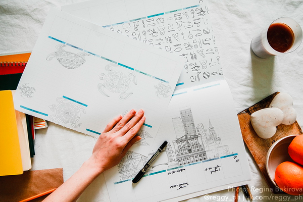 В планингах можно рисовать свои собственные скетчи. А для начала можно просто обводить контуры рисунков, чтобы набить руку. Можно записывать дела карандашом, а по факту выполнения — обводить яркой ручкой, чтобы была наглядная картина успехов и побед.