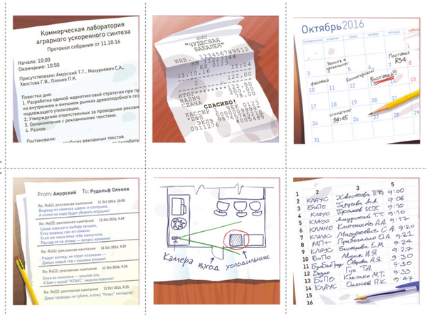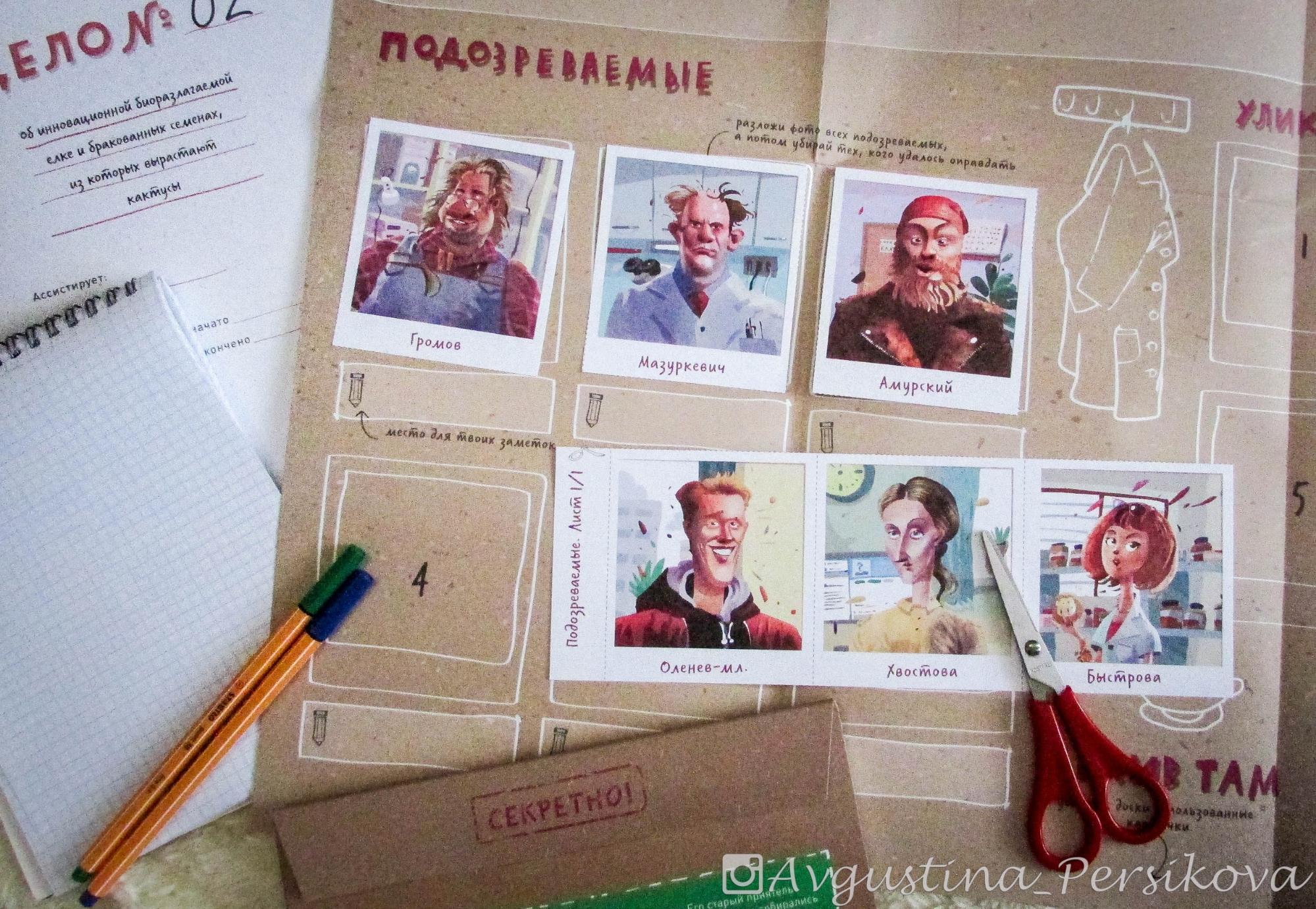 А: Это прежде всего, конечно, брошюра с историей — полноценный детектив, в которой есть очень разные герои — какие-то будут читателям более симпатичны, какие-то менее, у всех них есть свои характеры, свои узнаваемые черты, они не просто «карточные фигурки» для игры в сыщиков. Эффект, которого мы добивались — чтобы в этот детектив было не только интересно играть, но чтобы историю было интересно читать. Нам очень хочется верить, что это удалось.