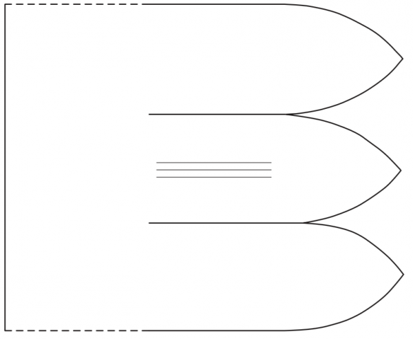 3. Вырежьте 15 лепестков по шаблону (ниже): полоски 10 × 30,5 см из однослойной бумаги. Сложите гармошкой по ширине шаблона, вырежьте множественный лепесток.