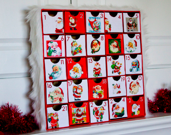 Многие создают календари своими руками из бумаги, картона, ткани. Ячейки, помимо традиционных окошек, делают также в виде коробочек, кармашков, кружек, мешочков, сумочек, свертков и даже носков и рукавичек. Самый быстрый и простой способ — изготовить адвент-календарь в виде гирлянды. На натянутую веревку подвесить нужное количество маленьких сюрпризов — и емкостями в этом случае может быть что угодно. Например, заранее упакуйте подарочки в оберточную бумагу и привяжите эти свертки к веревке или прицепите прищепкой. Если вы умеете шить, то изготовьте многоразовый календарь. Для этого нужно нашить на большой лист ткани маленькие квадратики-кармашки, закрепить лист на прочной основе (например, на картоне или пластике) — и можно использовать его много лет.