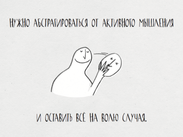 И наконец, где бы ты ни был, забудь о том, что ты (как тебе кажется) должен делать (или о чем тебе надо думать). Попробуй расслабиться, подождать минутку и открыться чему-то новому. Чаще всего именно зацикленность на чем-либо — идее, действии или чувстве — мешает нам добиться желаемого.