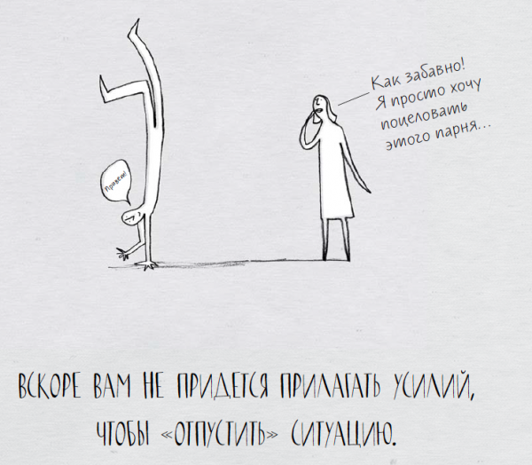 Само собой, радиостанция «Нескончаемые размышления» не прекратит вещание в вашей голове в ту же секунду. Ничего страшного. Это умение нужно тренировать. Но каждый раз, когда мысли будут упрямо появляться, просто позвольте мыслям пронизывать вас насквозь. Наблюдайте. Представьте, что ваше сознание — поверхность озера, и мысли то исчезают, оставляя воду сиять зеркальной гладью, то появляются, вызывая маленькие волны. Пусть это происходит.